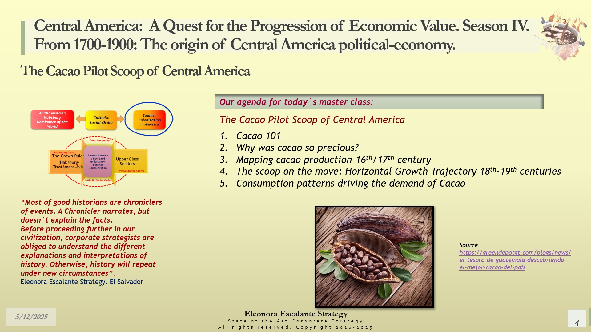 Strategic Reflections of today´s chapter: Central America: A quest for the progression of economic value. Season VI. Episode 13. The Cacao Pilot Scoop of Central America.