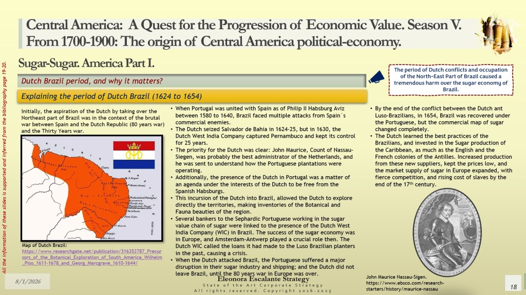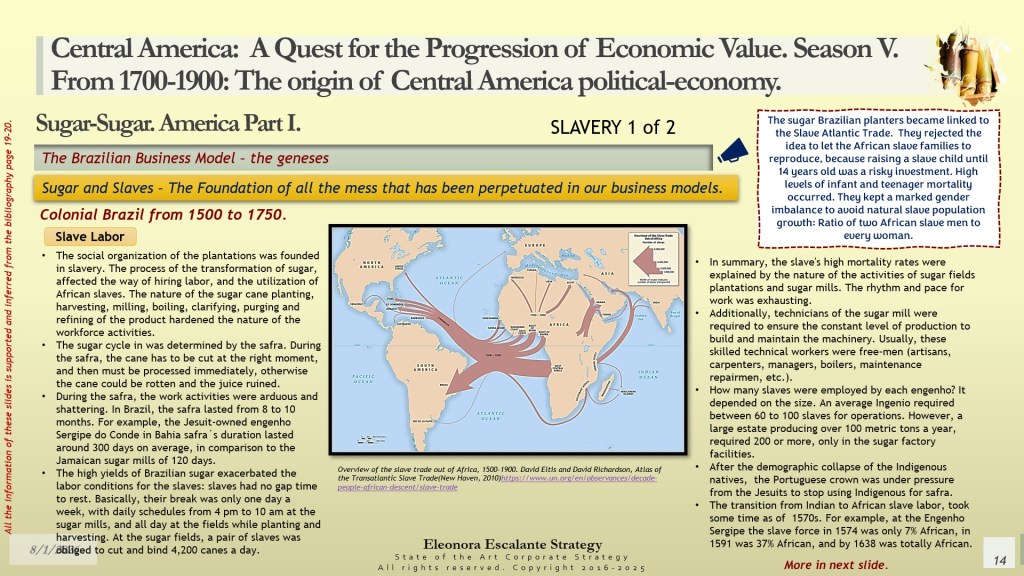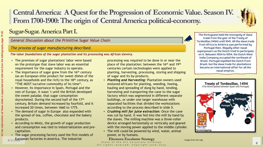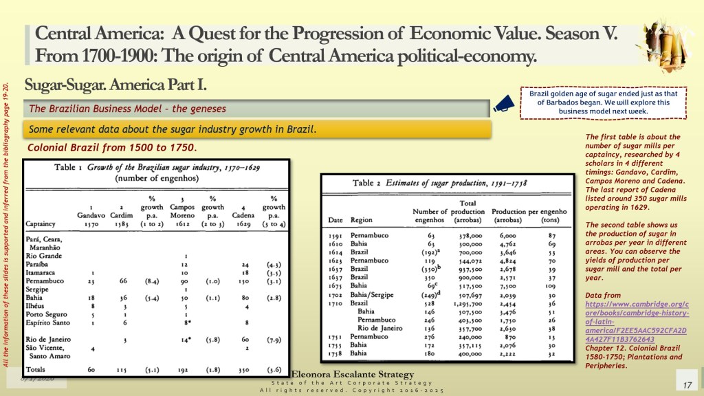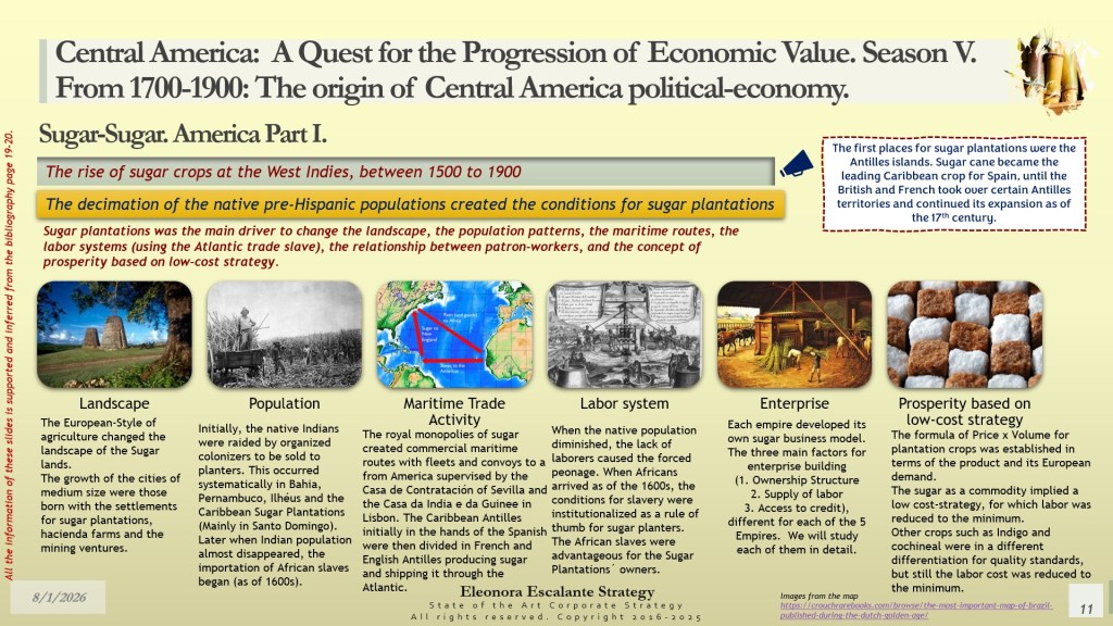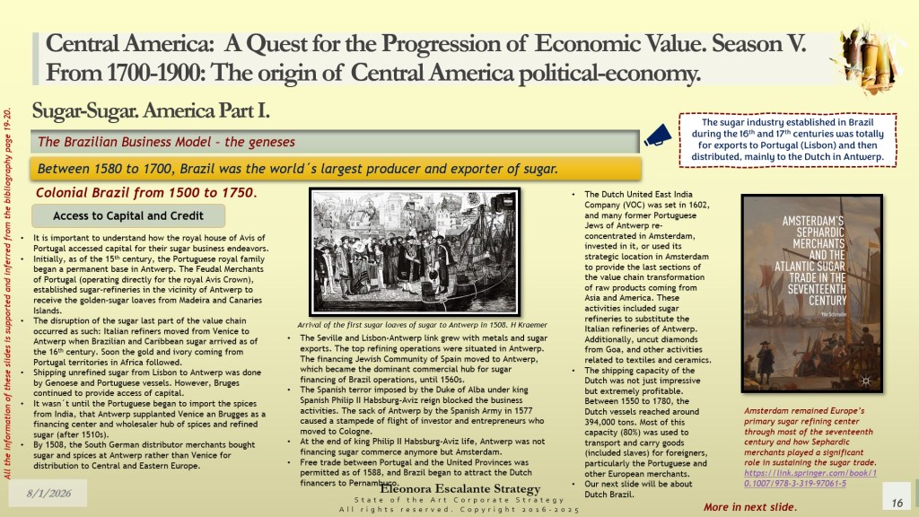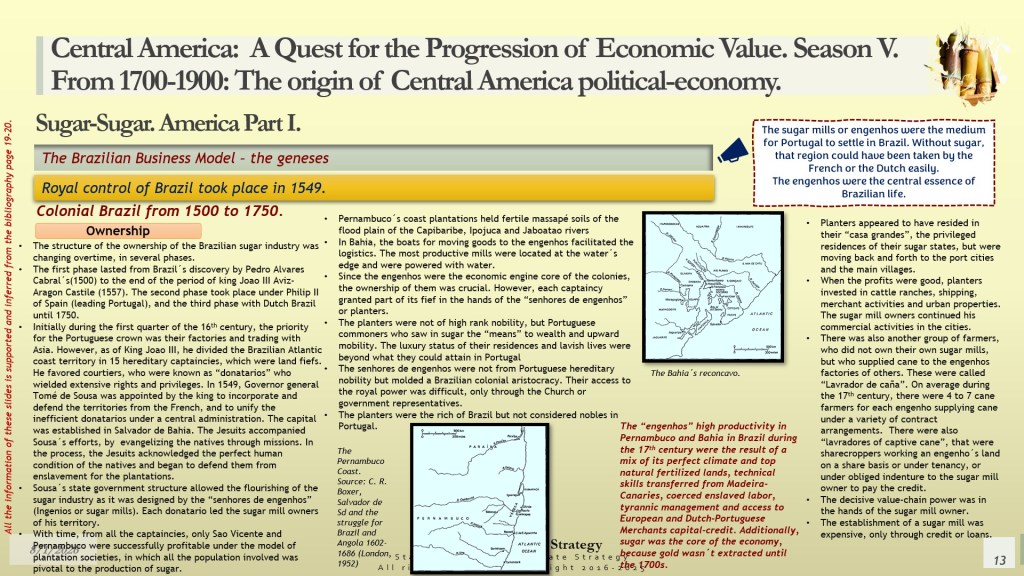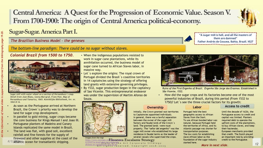This chapter marks the beginning of our attention to the production of Sugar in Spanish America. As we stated last year, the production of sugar in the Kingdom of Guatemala was not as relevant as that of Brazil and the Caribbean Islands. For this reason, we have refocused all our attention on comprehending the original 5 sugar business models of the 5 main empires: British, French, Spanish, Dutch, and Portuguese. Today, we started with Brazil. All of them produced the same commodity, but differently.