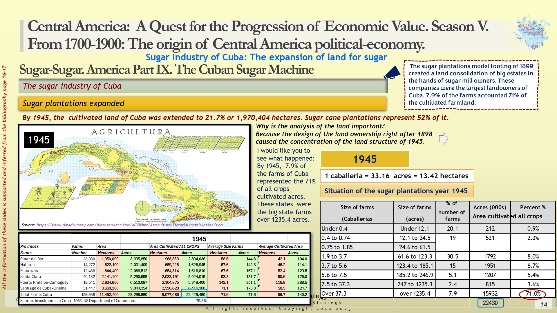 Today´s chapter is about understanding the land structure of Cuba, right after the USA occupation of the territory in 1898. We have analyzed the consequences of the decisions of the Cuban Planters (in terms of territorial land distribution) until 1945. More conclusions will be added next Monday.