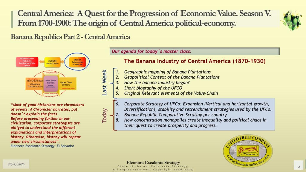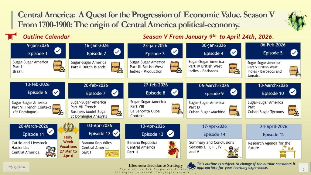 Strategic Reflections on “Central America: A quest for the progression of economic value. Bonus Season V. Episode 12. Banana Republics Part 2“. To be uploaded after the weekend.