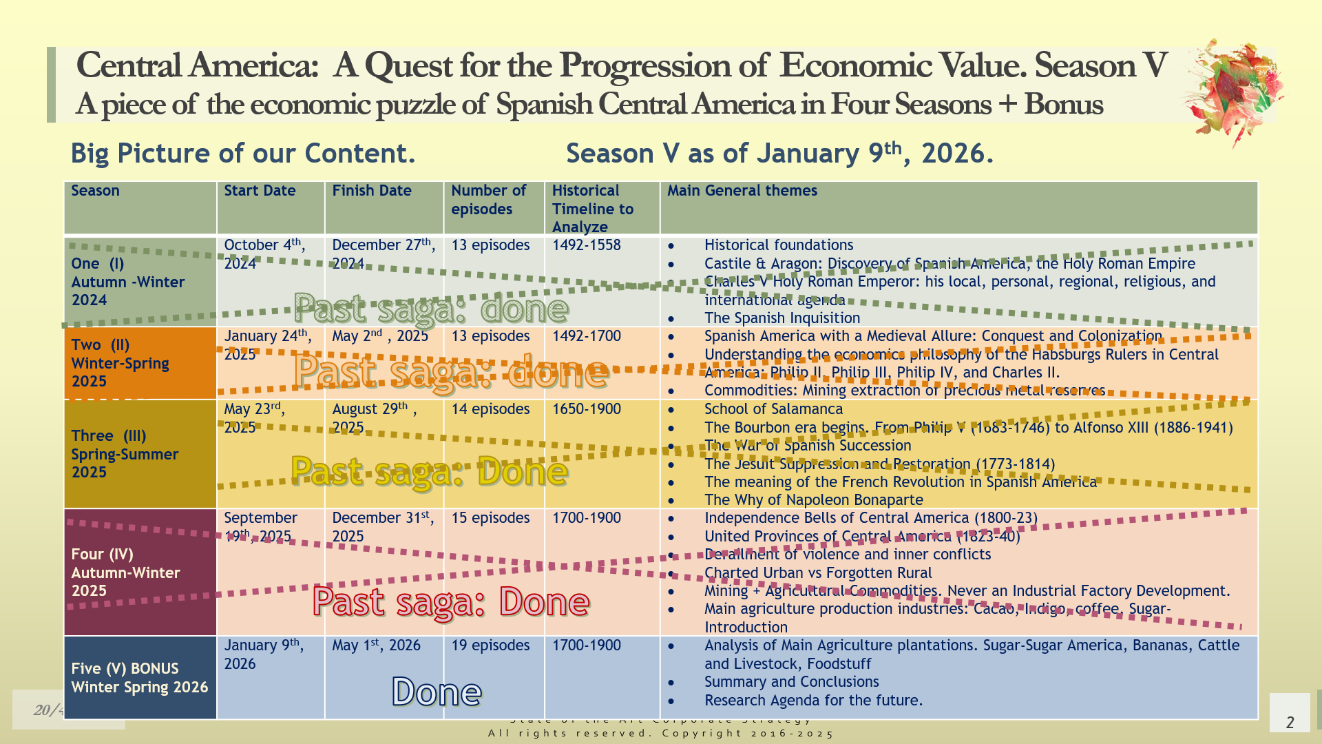 Central America: A Quest for the Progression of Economic Value. Bonus Season V. Episode 15. Summary and Conclusions Season II.