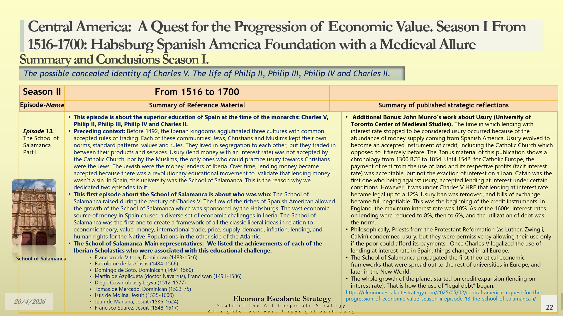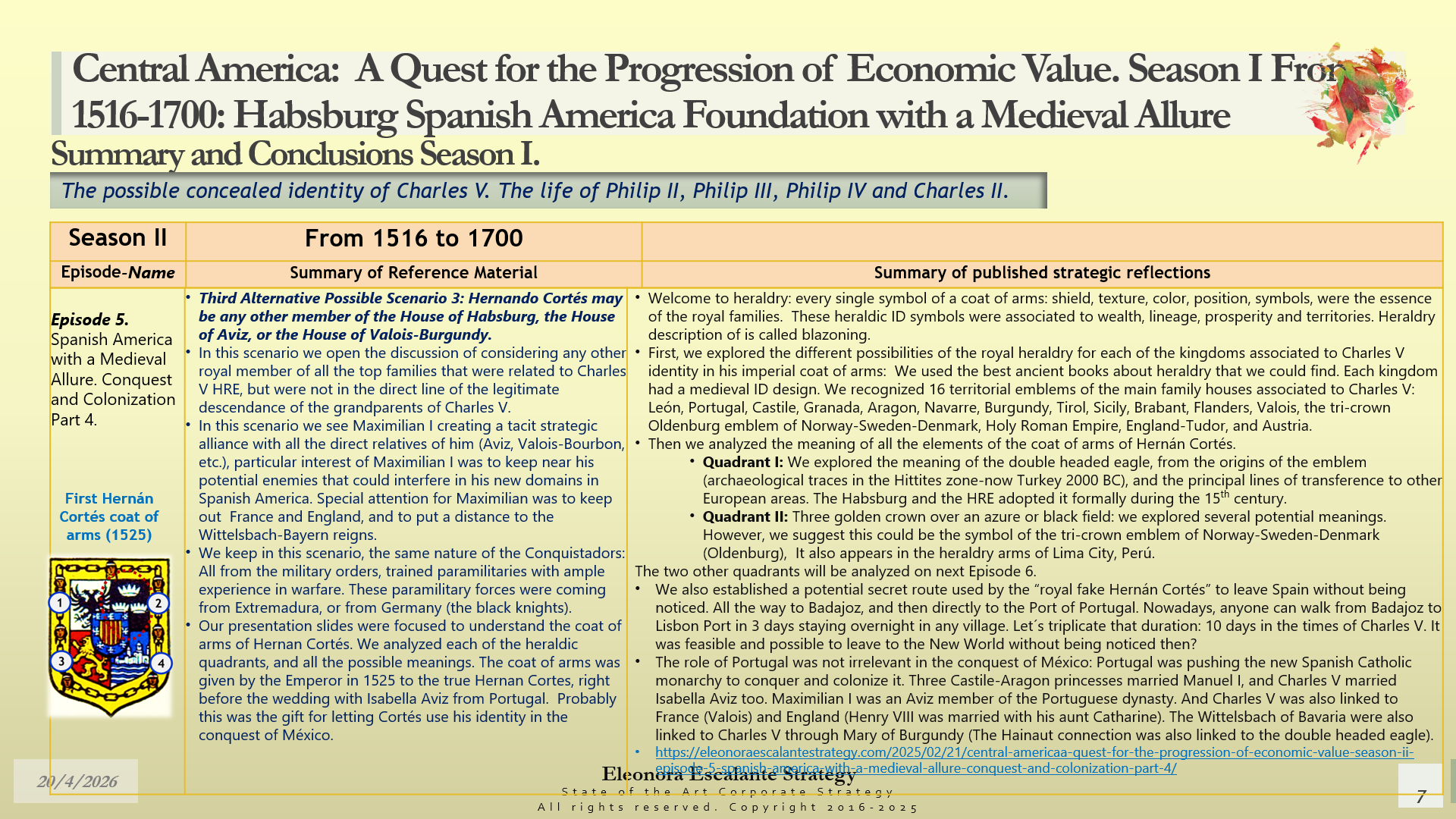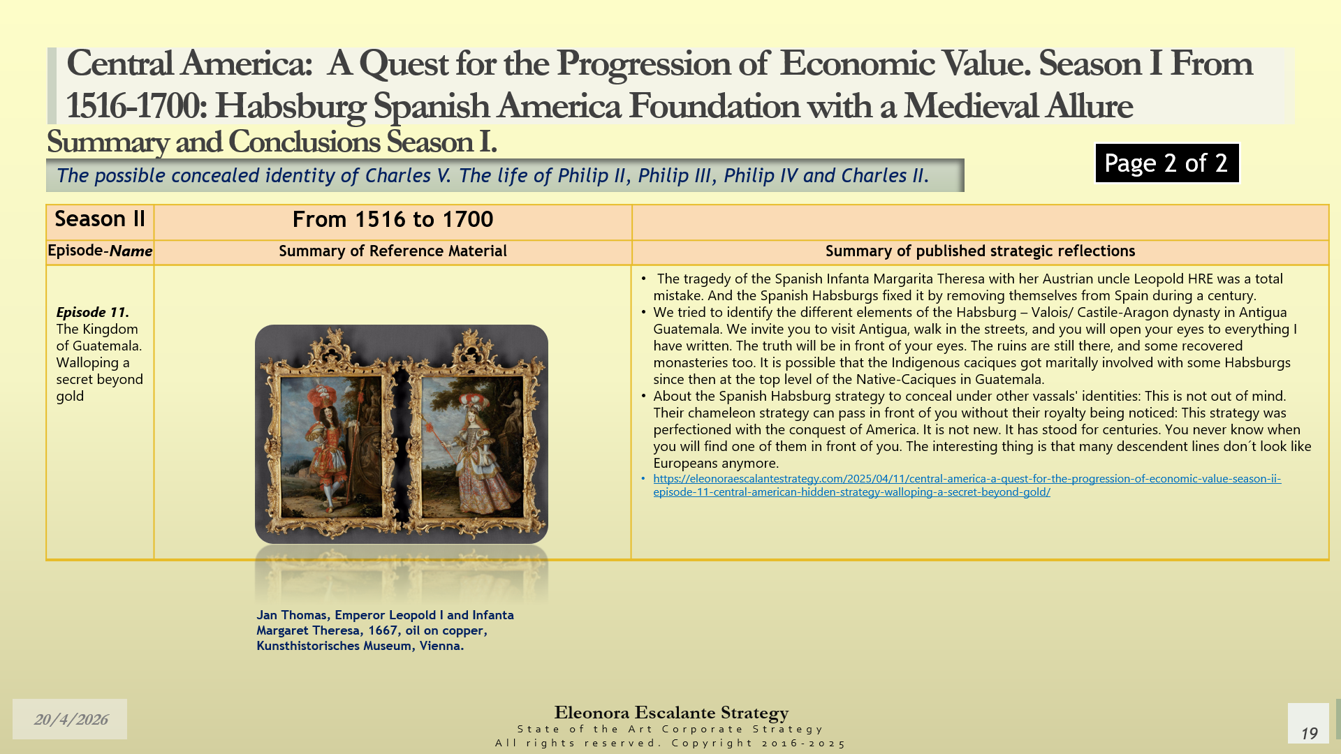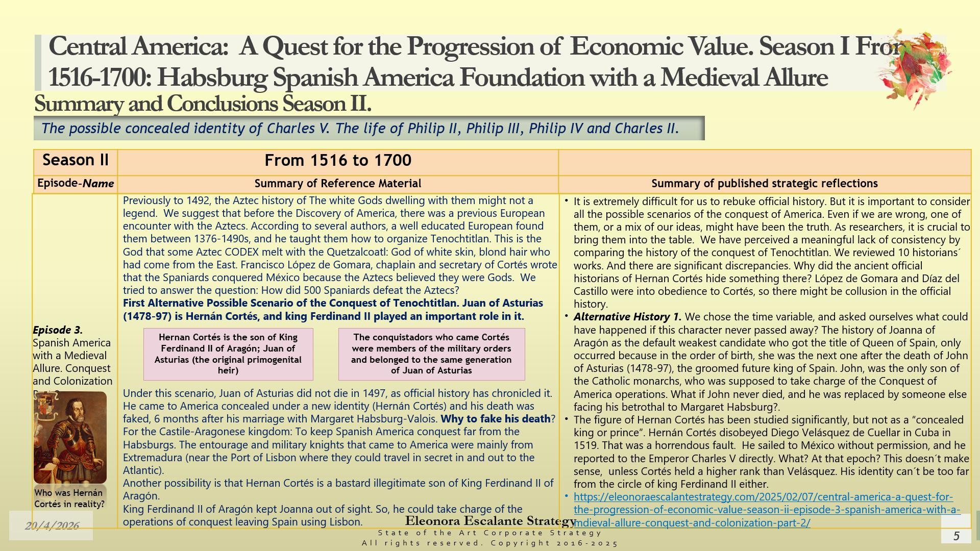 Conclusions of Season II. Central America: A Quest for the Progression of Economic Value. Period of study: From 1516 to 1700: Habsburg Spanish America Foundation with a Medieval Allure. The Possible Concealed Identity of Charles V. The Life of the Spanish Habsburg Kings of the 17th century: Philip II, Philip III, Philip IV, and Charles II.